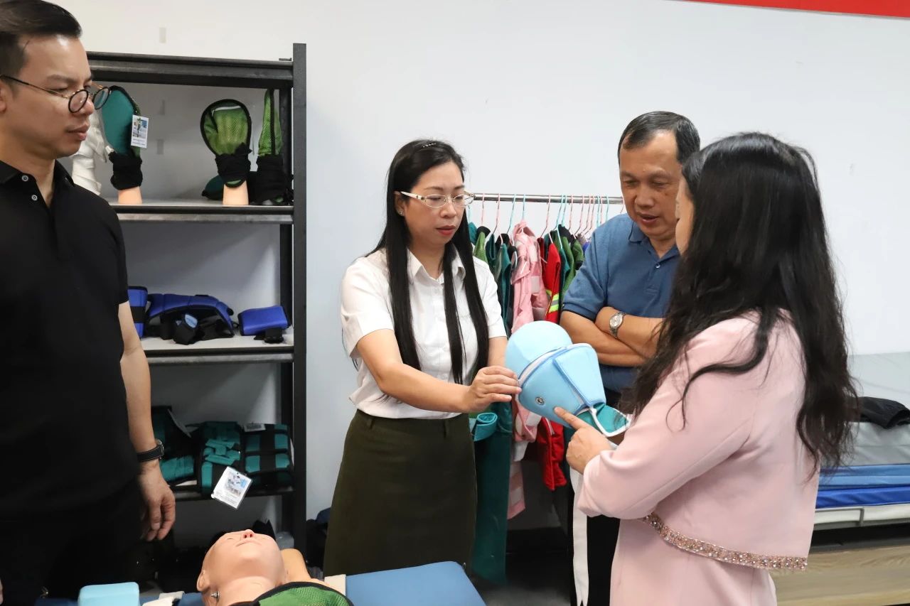 在蒙泰展廳,Elco團隊近距離接觸了多款融合臨床需求與創新技術的康復輔具產品。創始人陳仁英親自講解蒙泰的研發理念:“我們的產品始終圍繞‘解決臨床痛點’展開,許多創意直接來源于一線護士的實踐智慧。”