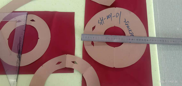 海綿體位墊在打板的設計中,應對應的角度分布,針對360度圓形設計的重點,四點分布應在90度、180度、270度、360度上面,對應的90度-270度需要利用布料的經度制作。180度-360度對應須在布料的緯度制作,對于布料的經度和緯度有很大的區別,若對應不到,那么生產出來的產品表面就會有浪、不平整等現象。尤是海綿體位墊圓形時,不可偏移布料的紗經,運用好布料的方向跟生產出來的產品質量有很大關系。